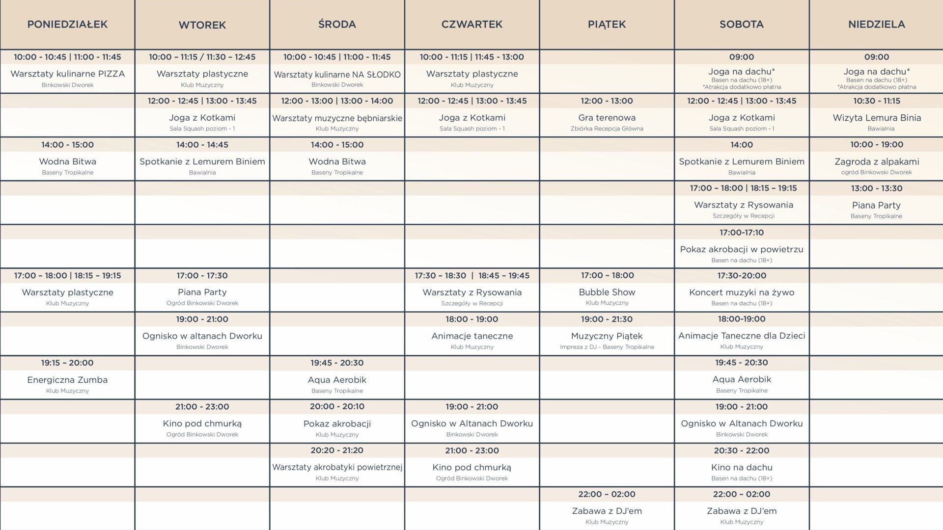 Wakacje to czas niezapomnianych wrażeń, a w Binkowski Resort dbamy o to, by każda chwila była wypełniona radością i dobrą zabawą! Przygotowaliśmy specjalny program animacji wakacyjnych, który sprawi, że zarówno dzieci, jak i dorośli znajdą coś dla siebie. Od kreatywnych warsztatów, przez sportowe wyzwania, aż po wieczorne pokazy – nudzie mówimy stanowcze "nie"!